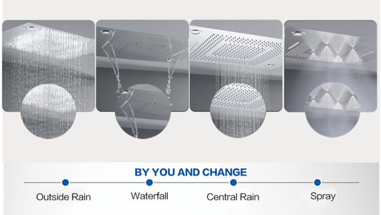 Lar / Produtos / Luxo grande led chuva chuveiro cabeça 800*600mm cromo 5 maneiras massagem cachoeira termostática conjunto de chuveiro chuvas