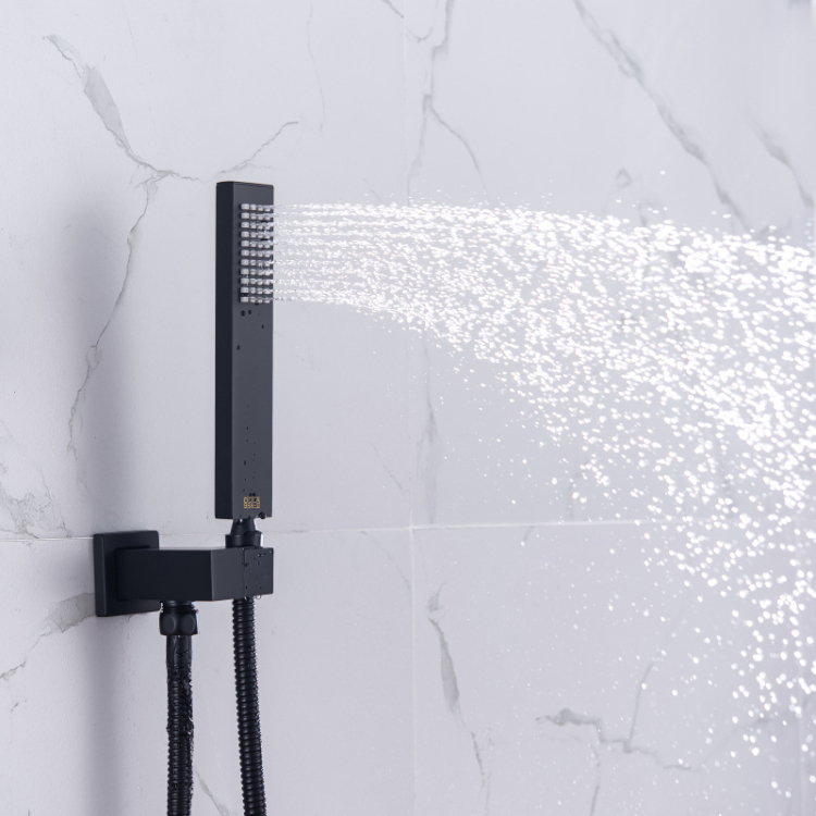 Lar / Produtos / Preto mate 360x500 MM LED Teto Chuveiro Chuveiro Recesso Teto Termostático Duas Funções Conjunto Misturador de Chuveiro