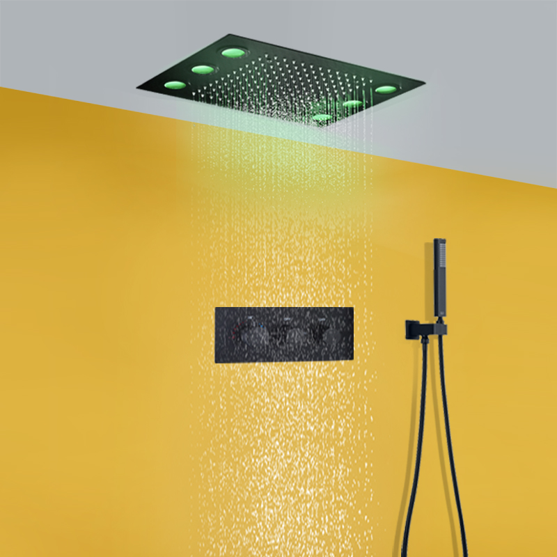 Preto mate 360x500 MM LED Teto Chuveiro Chuveiro Recesso Teto Termostático Duas Funções Conjunto Misturador de Chuveiro